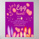 Prepare-se para uma Caça de Ovos de Páscoa com nossa adorável poster! Apresentando belos e coloridos coelhos em matizes cor-de-rosa, roxo e laranja escondidos entre um fundo rosa brilhante e roxo adornado com bolinhas amarelas claras e ovos de Páscoa cor-de-rosa, esta poster estabelece o humor perfeito para a sua festa de Páscoa. Também está disponível para download digital, fazer conveniente para o planejamento de festas de última hora. Personalize o texto para torná-lo seu e adicione um toque especial ao seu evento. Não perca a diversão - peça agora e deixe a diversão Páscoa começar!