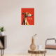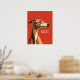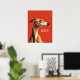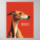 Este é um poster minimalista com uma ilustração marrom de galgos contra fundo vermelho vívido e um texto personalizável "delicado".