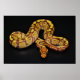 Uma píton de bola marrom e dourada em formato T pequeno.