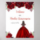 Poster Brown Hair Princesa Red Floral Quinceanera Bem-vin