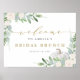 Bem-vindos convidados para o seu evento com este sinal de boas-vindas personalizável para brunch bridal. Apresenta abóbora branca de cor aquosa, folhas de eucalipto, flores brancas e outros acentos verdes. Personalize este sinal verde de boas-vindas ao brunch bridal acrescentando seus próprios detalhes. Este sinal de boas-vindas de abóbora é perfeito para chás de panela de outono.