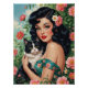 Pôster Brunette Pin-Up segurando Gato De Gato