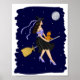 Poster Bruxa com um Gato Laranja em um Vassoura