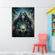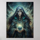 Entra num mundo de mistério arcanso com este espantoso impressão de arte na parede gótica apresentando uma bruxa escura segurando uma bola de cristal brilhante. Cercada por energia antiga e velada nas sombras, ela representa uma intuição profunda, a divinação e o poder feminino. Uma peça perfeita para Halloween, Samhain, ou decoração gótica do dia a dia. Impresso em papel de qualidade superior, disponível em vários tamanhos.