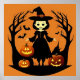 Poster Bruxa de Halloween com Pumpkins em Spooky Setting