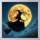 Uma bruxa voando sobre sua vassoura em frente a uma lua de cheio na noite de Halloween poster.