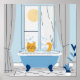 É uma noite lua e a hora perfeita para um banho. Gatinho também pensa assim. Este divertido "piecer" é a maneira PURR-FEC de juntar alegria no espaço da casa de banho. Uma design de tipo 0f. Impressão de penicl e tinta em tons azuis e laranja. É uma adição de excelente ao banheiro minimalista para adicionar um pop de cor. Veja a correspondência e os quadros disponíveis também.