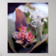Fotografia colorida de um pequeno botão floral tirada de manhã cedo, após uma queda de neve da noite na Califórnia.