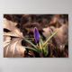 Uma flor Crocus florescente iluminada pelo sol em Jesmond Dene, Newcastle-upon-Tyne.