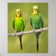 Dois buriques amarelos e verdes (Melopsittacus undulatus) estrelados sobre uma corda e vistos de frente