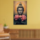 Buda encara sobre flores cor-de-rosa. O Estado meditativo e a paz chegarão a qualquer lugar onde esta imagem estiver. Parabéns Buda e Vesak.