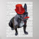Pôster Buldogue Francês com Chapéu Vermelho e bigode