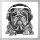 Poster Buldogue inglês bonito com fones de ouvido