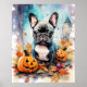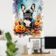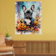 Poster Bulldog Francês Halloween Com Pumpkins Assustado