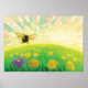 Bumblebee no Horizonte - Ilustração do livro infantil O Bumblebee Buzzing (Escrito e ilustrado por Julia Doria). Pronta manhã, campo de flor silvestre. Com raios da manhã, o soldado voa sobre um campo com flores. As mamangabas (do gênero Bombus) são polinizadores importantes. Bombas polinizam plantas na natureza, ajudando a manter nossos ecossistemas saudáveis. A perda de espécimes do gênero Bombus pode ter consequências ecológicas. Presente perfeito para abelhão e amantes de abelhas, apicultores e amantes da natureza.