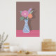 Um buquê bonito de flores modernas de primavera num vaso, com paleta colorida de cor rosa, marrom, laranja, verde, roxo e azul.