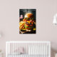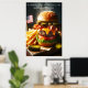Incêndio em pura felicidade de hambúrguer com esta criação de rega bucal. Um pedaço grosso e suculento de carne, grelhado à perfeição, é colocado em camadas com queijo cheddar derretido, bacon crocante, alface fresca, fatias maduras de tomate e picles. Tudo aninhado entre um pão de sésamo tostado e servido com um lado de batatas fritas ouros e estaladiças. Uma bandeira minúscula americana adiciona um toque patriótico, fazer esta uma verdadeira celebração dos sabores clássicos americanos.