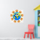Cartoon World Globe personagem rodeada por hambúrgueres.