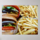 Uma foto de cheeseburgers e batatas fritas gostosas da grelha.