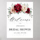 Elegante Burgundy Red, Campagne ivory earthy tema floral chá de panela de boas-vindas poster com elegante buquê de Burgundy, rosas de marfim champagne e folhas verdes de eucalipto. Entre em contato comigo para obter ajuda sobre a personalização ou se você precisar de outro produto com este design.