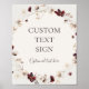 Este cartaz personalizado de flor silvestre burgundy | cartões bege e presentes é perfeito para o seu casamento clássico rústico boho rústico, branco, marsala. O design apresenta uma coroa boêmia ou buquê de flores silvestres roxas, vermelhas, cinzas e rosa velho em aquarela moderna, juntamente com folhagens laranja queimado e dourado. Apresentados no design estão papoulas e cevada. O design é ideal para um casamento simples e minimalista de outono ou verão de outono, primavera, jardim country. Por favor, encontre outros artigos de papelaria de casamento correspondentes ou coordenados no restante desta coleção.
