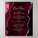 Poster Burgundy Red Silver Agate Script Wedding Bar Menu