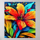 Um trabalho de arte floral abstrato mesmerizante com um lírio vibrante num caleidoscópio de cores. Perfeito para adicionar um toque de arte moderna ao seu estilo (Esta Design Feita com IA). Faça a ordem hoje e encare a alegria de Comprar!