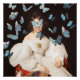 Vintage pintando remix de uma mulher vestindo um vestido branco vintage com borboletas azul pastel.
