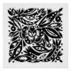 Recortes decorativos de papel foram o material original para esta imagem de AnniArts. Essa variação tem a imagem em preto em um campo branco. Coordena-se com o preto sobre as aves brancas no Bush para um par perfeito. Os gráficos ousados são perfeitos para interiores em preto e branco e espaços de escritórios. Uma ampla margem permite o enquadramento sem perda de detalhes. A imagem só é adequada para a arte de parede com proporção largura/altura quadrada.