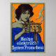 C. 1910 poster de publicidade culinária alemã que representa uma linda mulher de olhos azuis segurando o Prometeu, um dispositivo de cozinhar elétrico inicial.