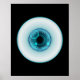 Um olho azul cibernético com vários monitores digitais, incluindo círculos, pontos e quadrados, alguns iluminados para cima e outros não, com uma pequena cruz no meio e a palavra "visão" para trás na parte inferior direita.