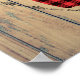 Um poster com estilo rústico. Projetado com uma cabeça de veado com galhadas, feito de xadrez vermelha. Um quadro oval de rico envolve a imagem. Uma imagem de tábuas de madeira para o fundo dá-lhe uma sensação de país estranho.