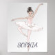 Um poster especial para a bailarina. O design é facilmente personalizado digitando seu próprio nome. Uma bailarina é apresentada sobre um fundo de cor prateada.
