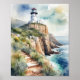 Este impressão de arte mostra um retrato de aquarela do Farol Cape Point na Cidade do Cabo, África do Sul.