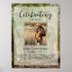 O pôster memorial perfeito para cumprimentar familiares e amigos ao entrarem na celebração da vida do seu ente querido. O design apresenta uma foto pessoal quadrada, 5 linhas de texto personalizado e uma foto de natureza ao fundo com cervos na floresta. Você pode facilmente trocá-la por uma foto de fundo própria. Clássico, porém único - este modelo é muito fácil de personalizar e também será uma lembrança memorial maravilhosa.