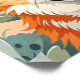 Cachorro corgi alegre coroa de margaridas e girassóis, com olhos grandes exagerados e língua pendente. Arte em estilo vetorial plano em tons quentes (ferrugem, creme, mostarda) sobre um fundo de pêssego suave.