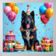 Poster Cachorro de aniversário com bolo e balões