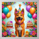 Poster Cachorro de aniversário com bolo e balões