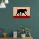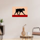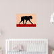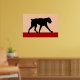 Um design de arte moderna minimalista de uma silhueta de um cachorro-boxer em cores preta e vermelha.