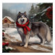 Pôster Cachorro Malamute do Alasca no Natal da Neve