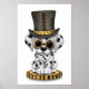 Este design bonito apresenta um pequeno cachorrinho dalmata com um chapéu e óculos de topo Steampunk. O cachorro está sentado sobre uma grande engrenagem metálica com suas patas ao lado umas das outras, olhando para frente com sua cabeça levemente inclinada para um lado. A cabeça e o corpo pequenos, bem como os detalhes no pelo e no metal, criam uma bela combinação de desenho animado e aparência realista. Este adorável design de recuperador de ouros é um exemplo único do Futurismo Vitoriano também conhecido como Steampunk.