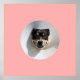Feliz cão sorridente vestindo um cone em um fundo rosa