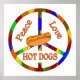 Um amante de cachorro-quente vai desfrutar desse sinal de paz colorido com um cachorro-quente e as palavras - Cães-Quentes de Amor pela Paz.
