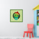 Um poster com uma ilustração fofa de um cacto verde sentado num pote de flores. Grandes olhos kawaii e vestindo um sombrero vermelho. O fundo é um padrão com espirais de verde limão.