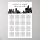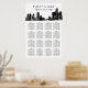 Elegante design de cartaz de assentos de casamento de Detroit apresenta uma imagem única gravada da silhueta da cidade de Downtown Detroit tirada à noite ao longo da orla, combinada com tipografia vintage Art Déco e um esquema de cores clássico preto e branco. Personalize o texto personalizado com um monograma dos nomes dos noivos e data de casamento, números das mesas e nomes dos convidados.