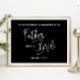 Este elegante cartaz de casamento comemorativo com branco sobre preto é uma maneira bonita de lembrar e prestar homenagem ao pai da noiva no dia do seu casamento. Coloque-o numa moldura e ponha no assento onde ele estaria sentado no casamento.