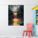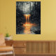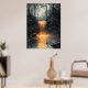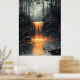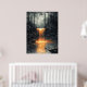 Uma pintura cativante de uma cascata ouro brilhando em meio a uma floresta mística. Esse sereno e trabalho de arte atmosférico evoca tranquilidade e admiração, perfeito para amantes da natureza ou como decoração elegante de parede, trazendo um toque quente e encantador para qualquer espaço interior.