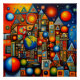 A.I. criou uma composição geométrica abstrato celestial sem sentido de planetas, estrelas, linhas, formas e cores em um arranjo que agradava os sentidos do artista.