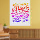 Desenho de estampas coloridas de pata de cão, corações e tipografia. Arte de parede personalizada. Ideia de presente para amantes de cães.