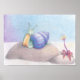 Poster de um belo caracol fantástico que subiu acima das nuvens para encontrar o café da manhã